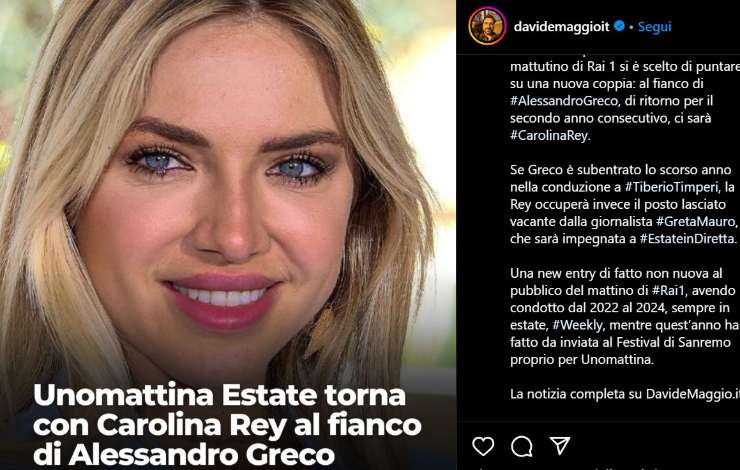 Al suo posto ad Uno Mattina Estate arriverà Carolina Rey, volto nuovo per molti, ma non per tutti. Dal 2022 al 2024 la bravissima conduttrice ha condotto Weekly e a febbraio scorso è stata scelta come inviata da Carlo Conti per il suo Festival di Sanremo. Prova superata e occasione importante per la giovane conduttrice che dal prossimo anno potrebbe fare un ulteriore step.
